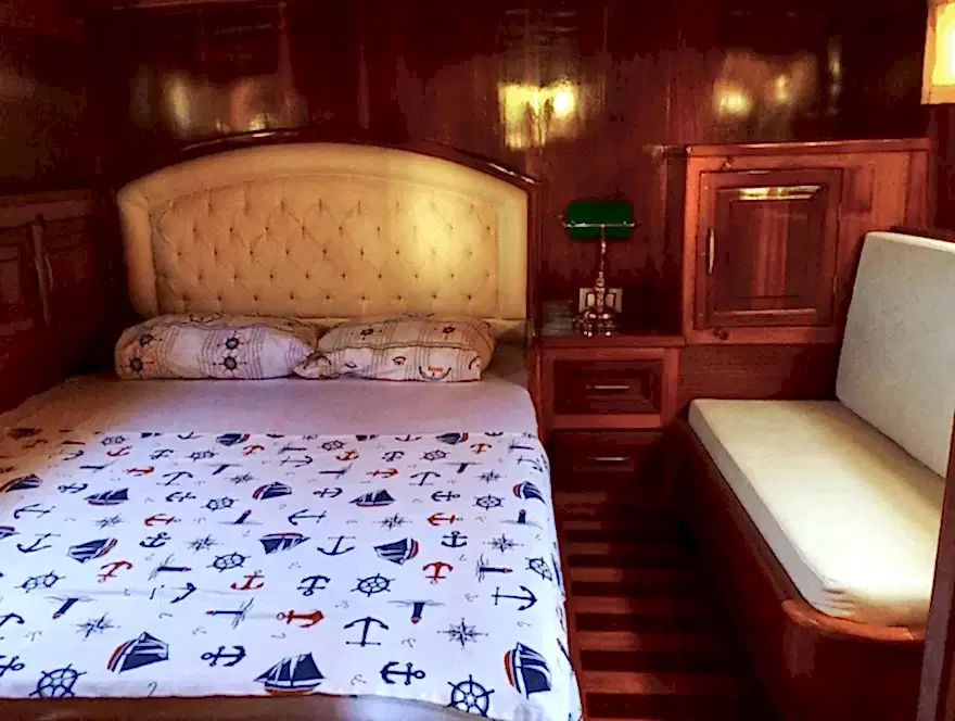 İhtiyaçlarınızı karşılayabileceğiniz tuvalet ve rahatlıkla giyinebileceğiniz giyinme odası bulunan guletimiz toplam 12 kişilktir. Dileyen misafirlerimiz istirahat etmek için odayı kullanabilirler. İstediğiniz müzikleri dinleyebileceğiniz müzik sistemimiz mevcuttur. Dalış ekipmanlarımızdan yararlanabilir, Bodrum Denizinin muhteşem canlılarıyla birlikte yüzme olanağını deneyimleyebilirsiniz. İhtiyacınız doğrultusunda sizin için özel olarak hazırlanmış olan plaj havlularını temin edebilirsiniz. Mavi turdan yorulan misafirlerimiz ihtiyaç halinde mide rahatlatıcı hap ve ilk yardım malzemelerimizi deneyimli ekibimizden isteyebilirler.