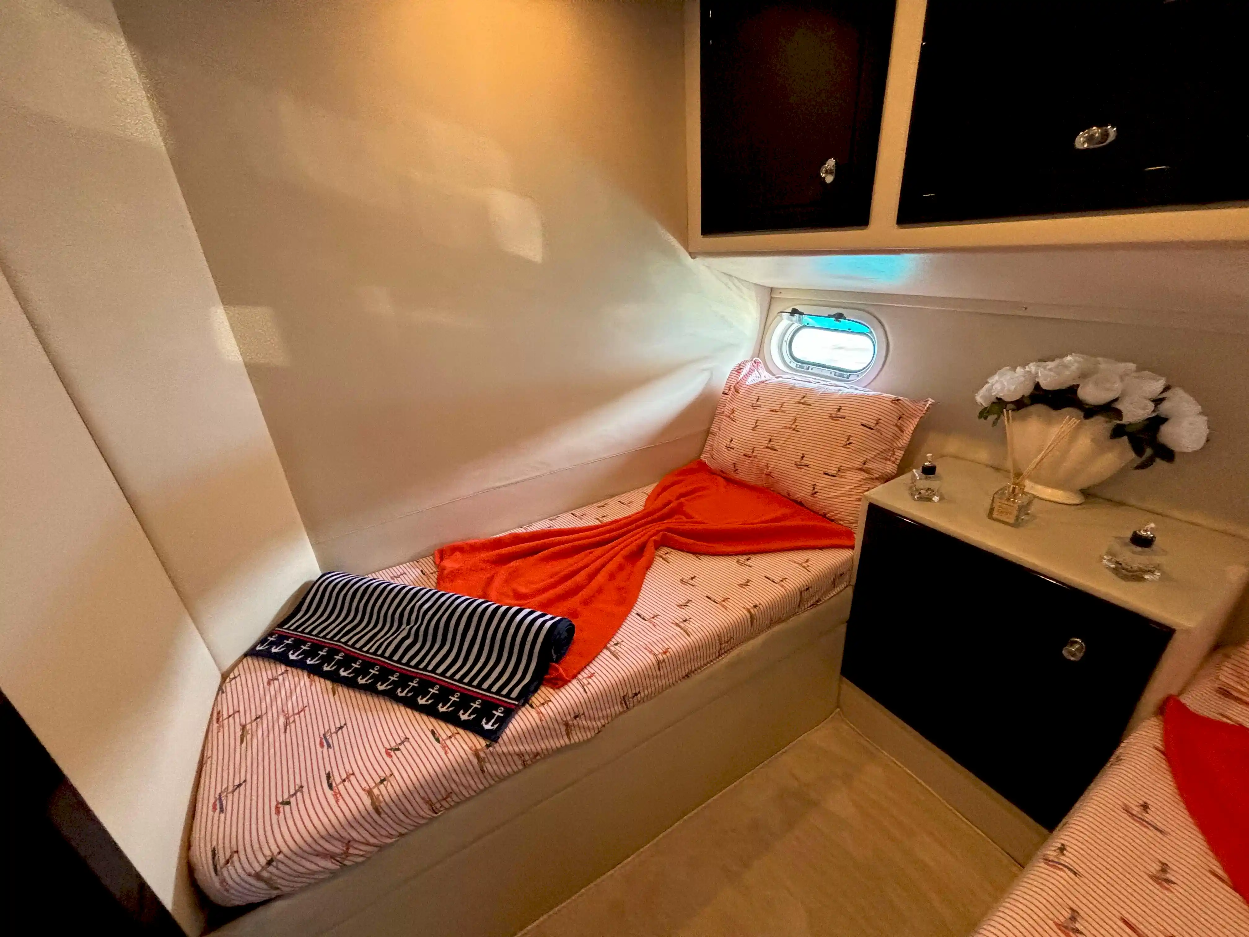 İhtiyaçlarınızı karşılayabileceğiniz tuvalet ve giyinme odaları bulunan lüks motoryatımız küçük gruplar için uygundur. Dileyen misafirlerimiz istirahat etmek için kabinleri kullanabilirler. İstediğiniz müzikleri dinleyebileceğiniz bir müzik sistemi yatımızda mevcuttur. Su sporları olanağında bulunan motoryatımız Bodrum'un en eşsiz koylarında sizlere gün boyu hizmet vermeye devam edecektir. Dalış ekipmanlarımızdan yararlanabilir, Bodrum denizinin muhteşem canlarıyla birlikte yüzme olanağını deneyimleyebilirsiniz. Olta takımı ile keyifli dakikalar yaşayabilir farklı tecrübeler edinebilirsiniz.