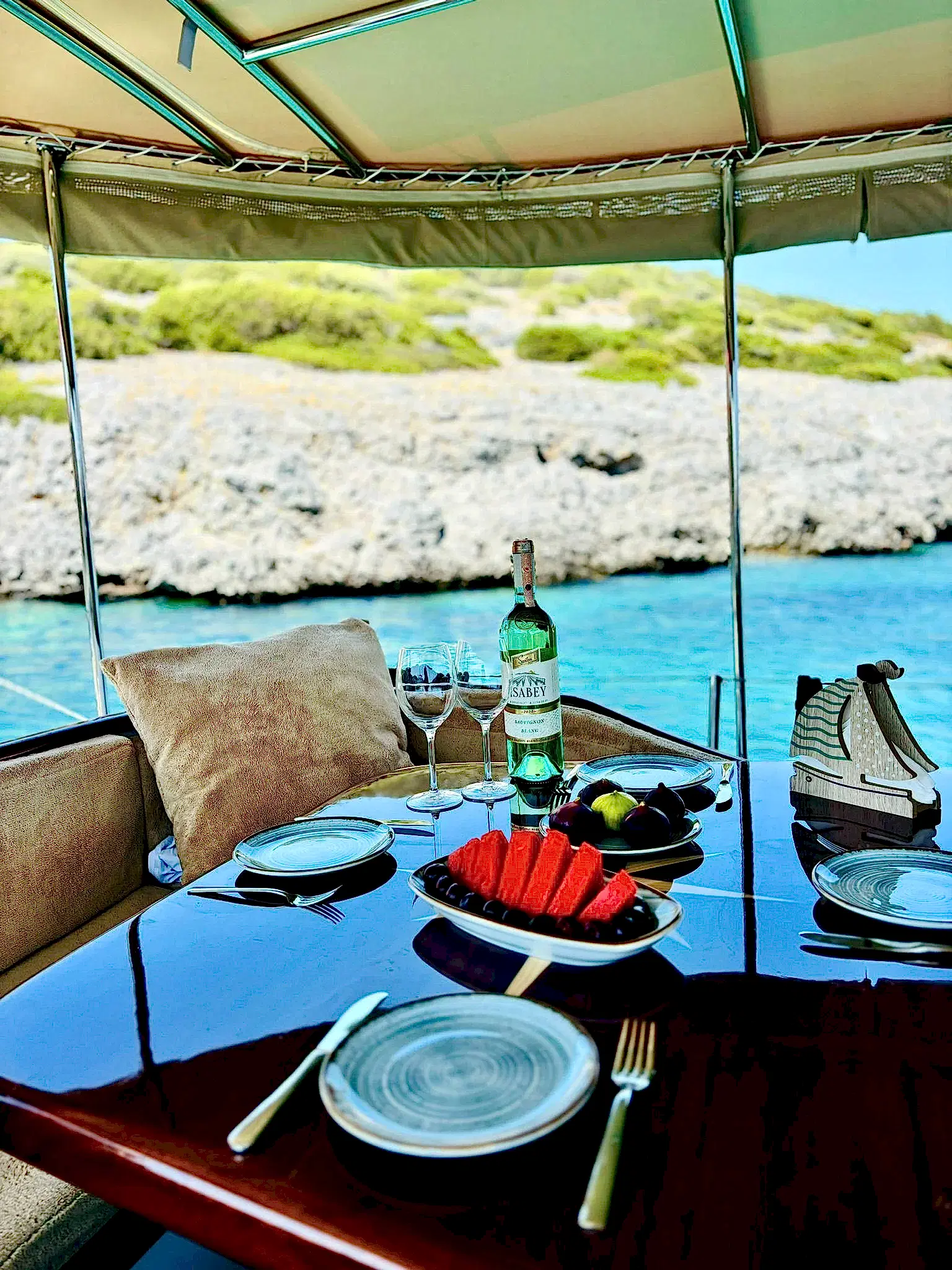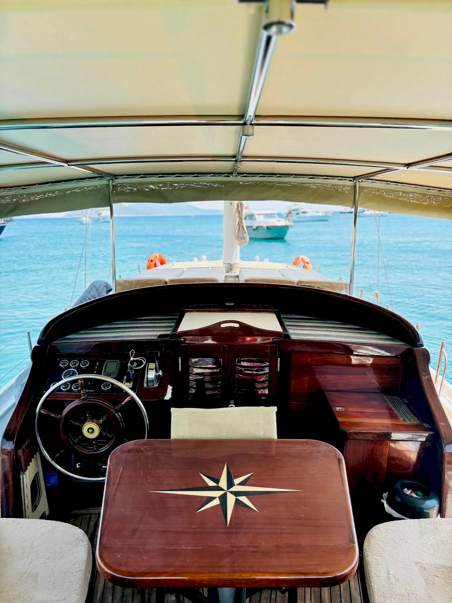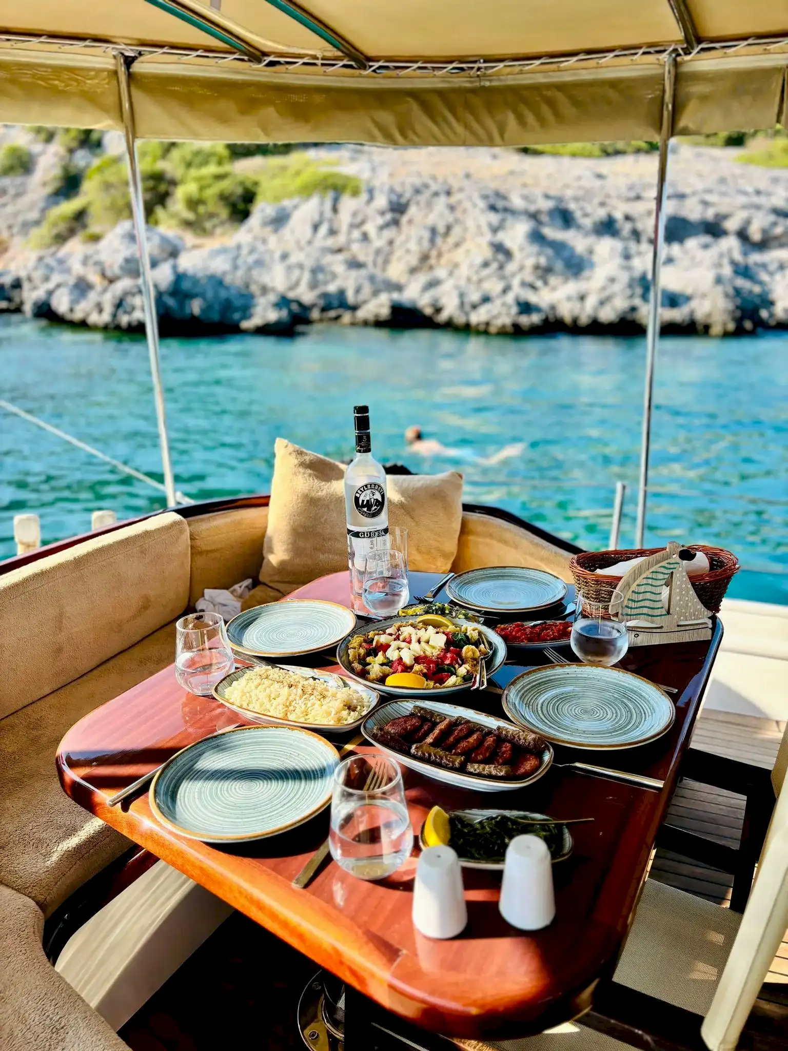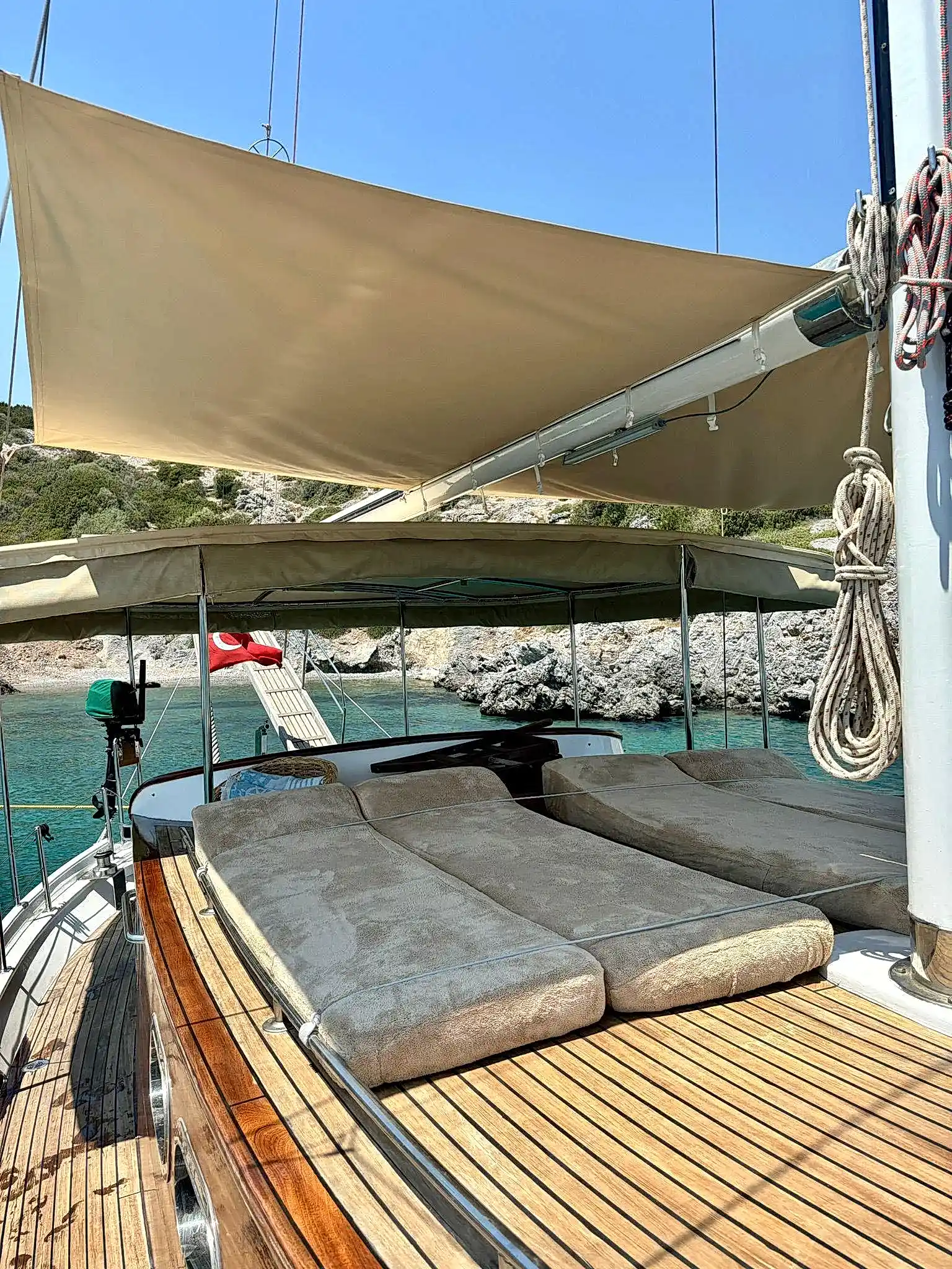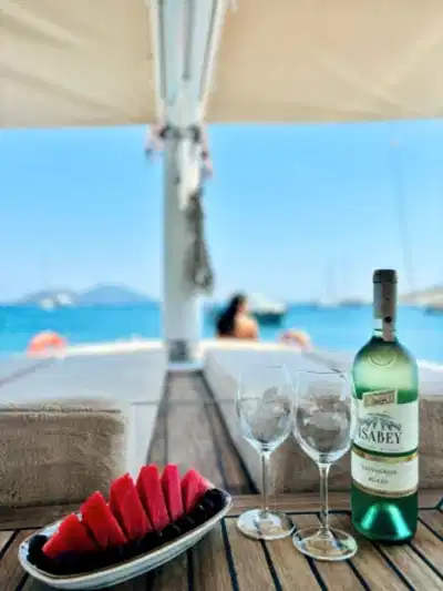 Ebruli, yalnızca şık görünümüyle değil, aynı zamanda konforlu iç mekanı ve düzenli düzeniyle de öne çıkıyor. Geniş oturma alanları, gölgelikli üst güverte ve dinlenme alanları, tur boyunca konfor sağlıyor. Güler yüzlü mürettebatımız, özel Bodrum tekne turu deneyiminizi kusursuz hale getirerek gün boyunca size eşlik edecek.