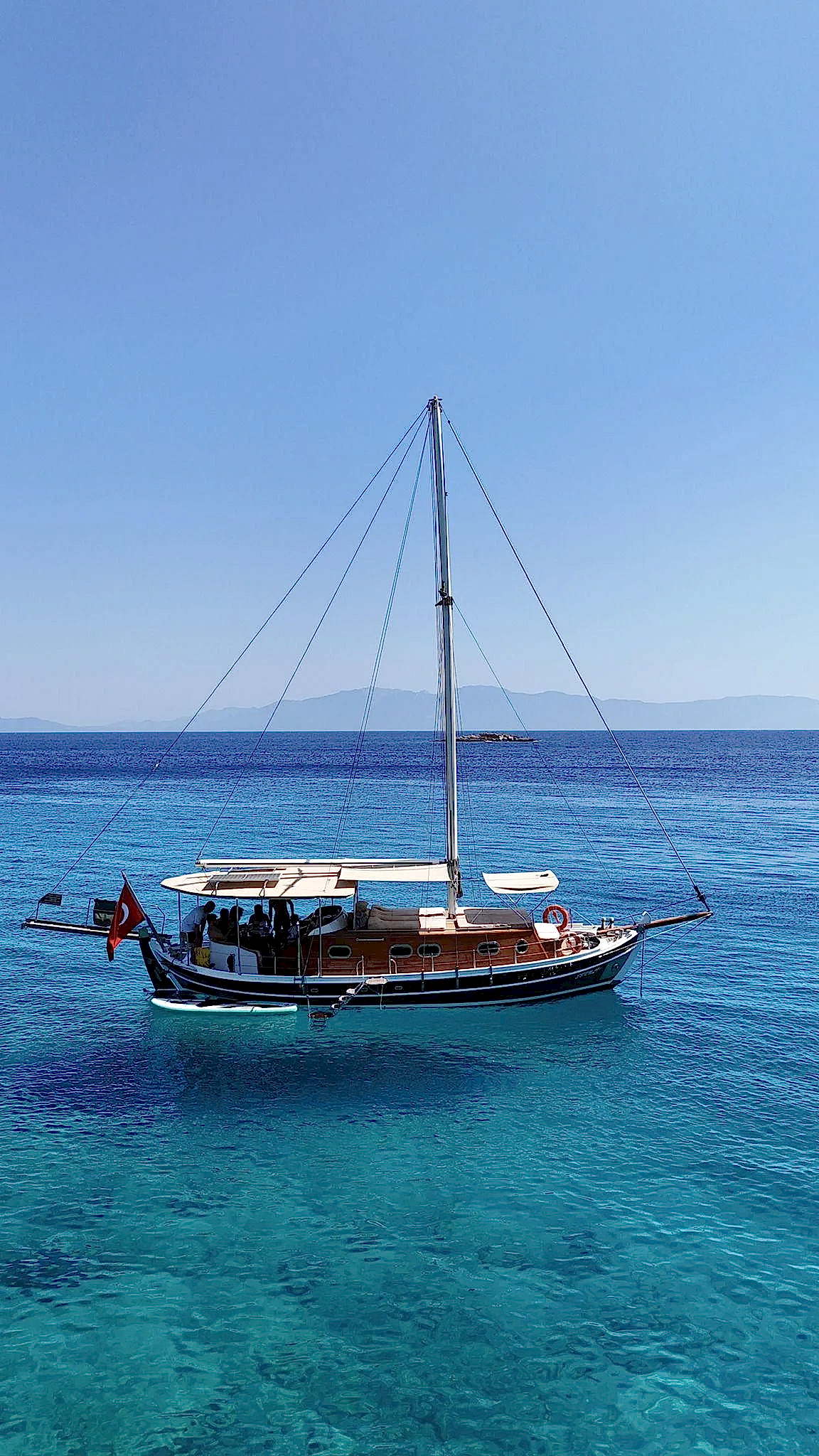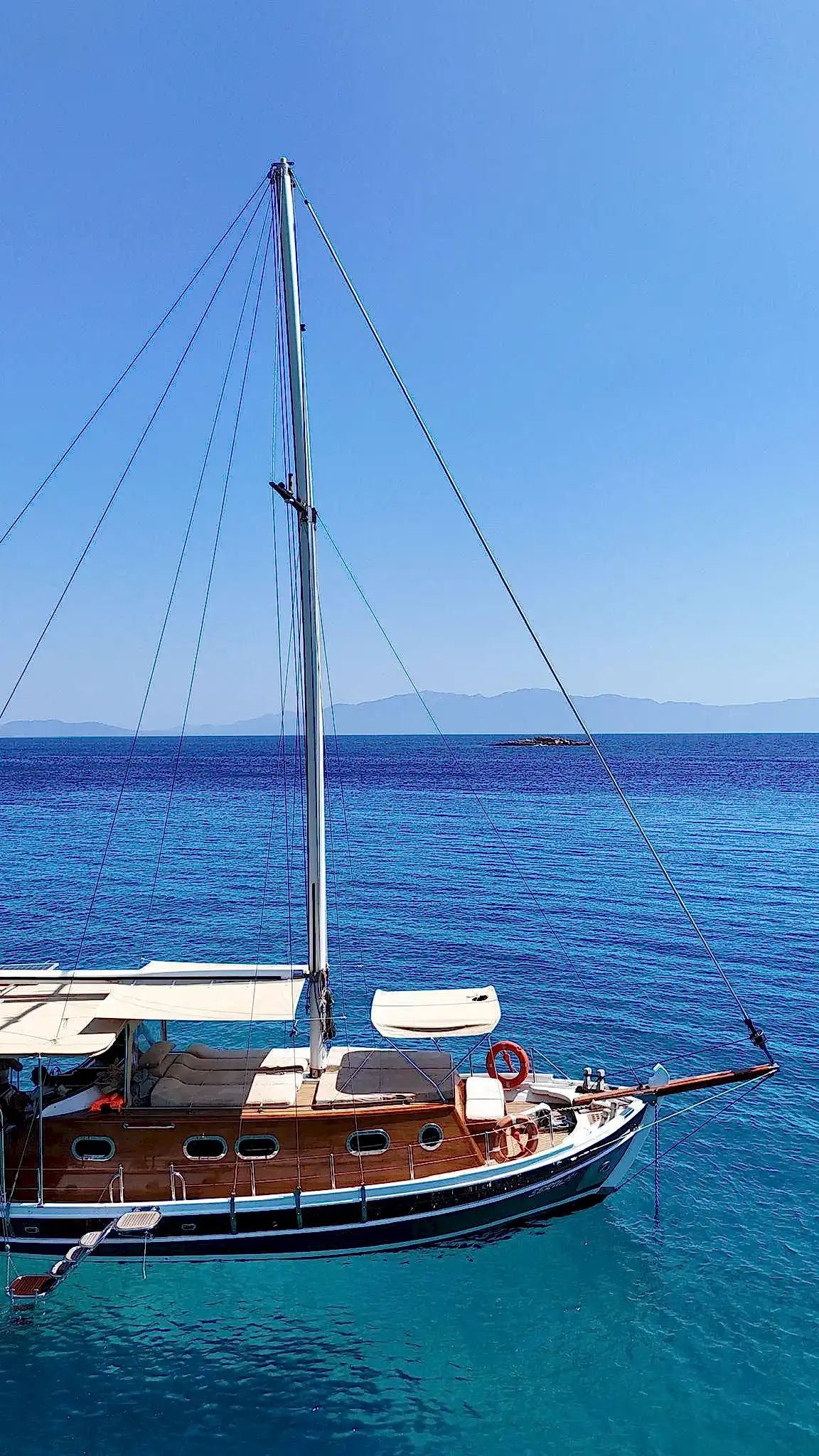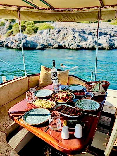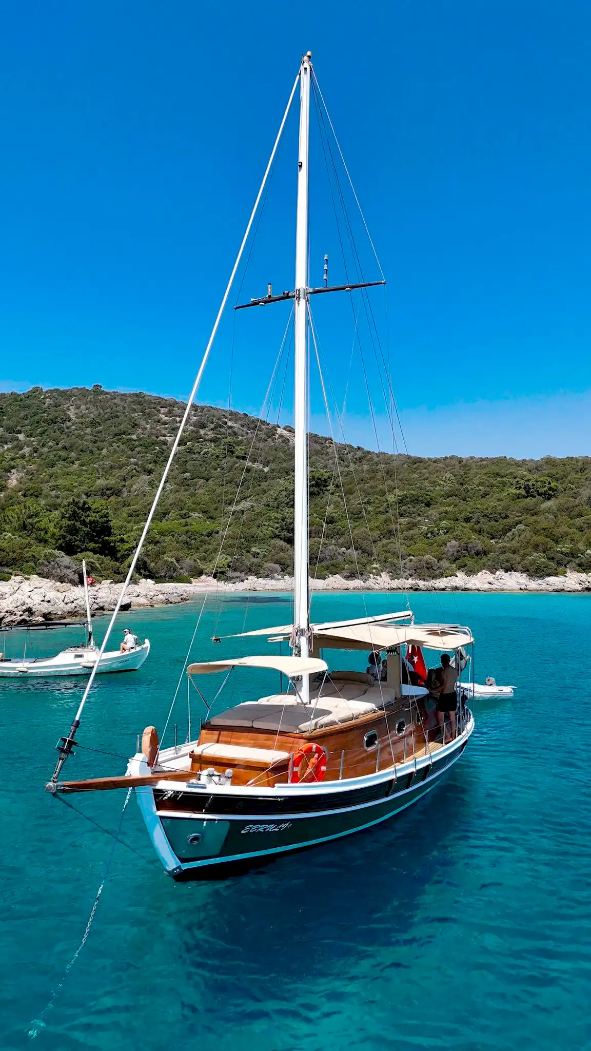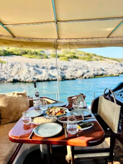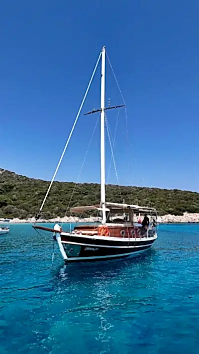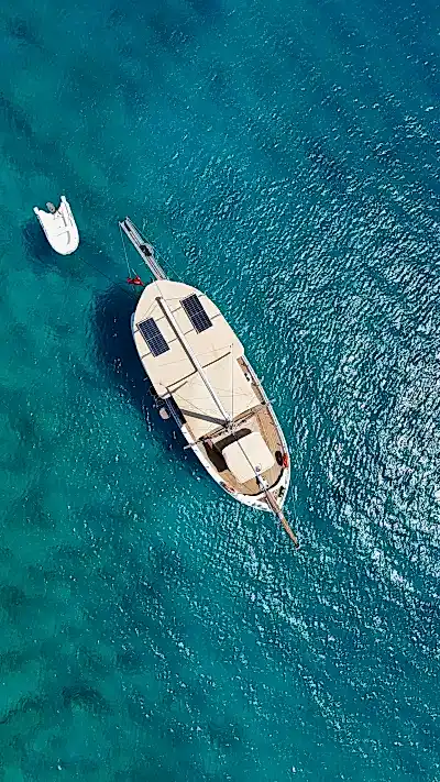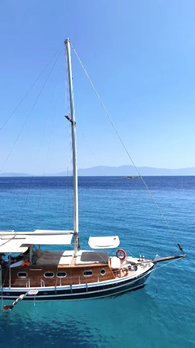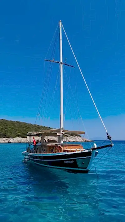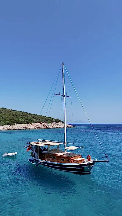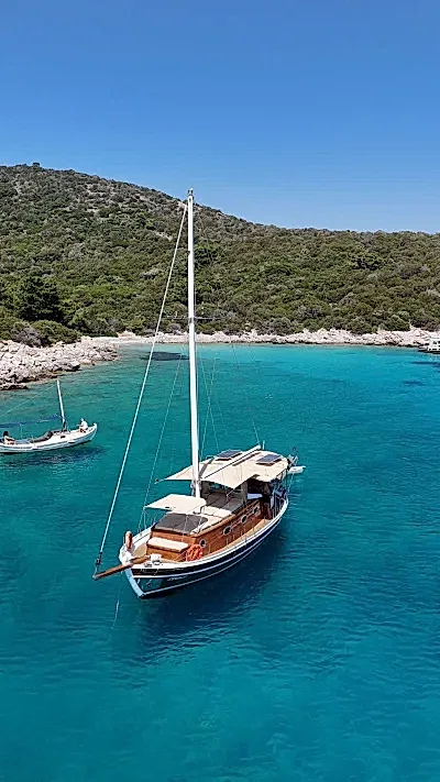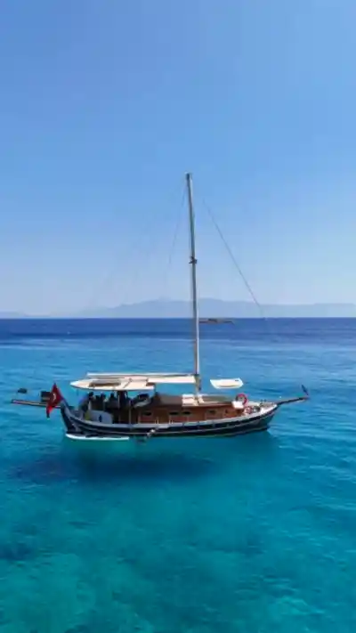 12 metrelik Ebruli, Bodrum'un huzurlu koylarını keşfetmek ve sevdikleriyle keyifli bir gün geçirmek isteyenler için harika bir seçim. Klasik bir Bodrum guletinin sıcak atmosferini yansıtan bu özel tekne, altı kişilik kapasitesiyle küçük gruplara samimi bir deniz deneyimi sunuyor. Geniş güvertesinde güneşlenin, serin Ege sularında yüzün ve gün boyu doğanın ve denizin tadını çıkarın.