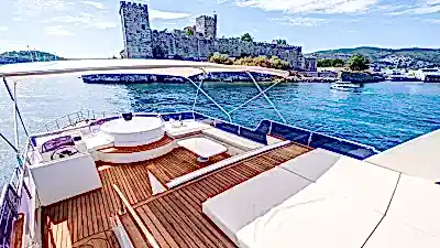 Rahat edebileceğiniz ve gün boyu güneşin tadını çıkarabileceğiniz oldukça yumuşak minderlerimizde Bodrum Tekne Turunu konforlu bir şekilde sürdürebilirsiniz.
