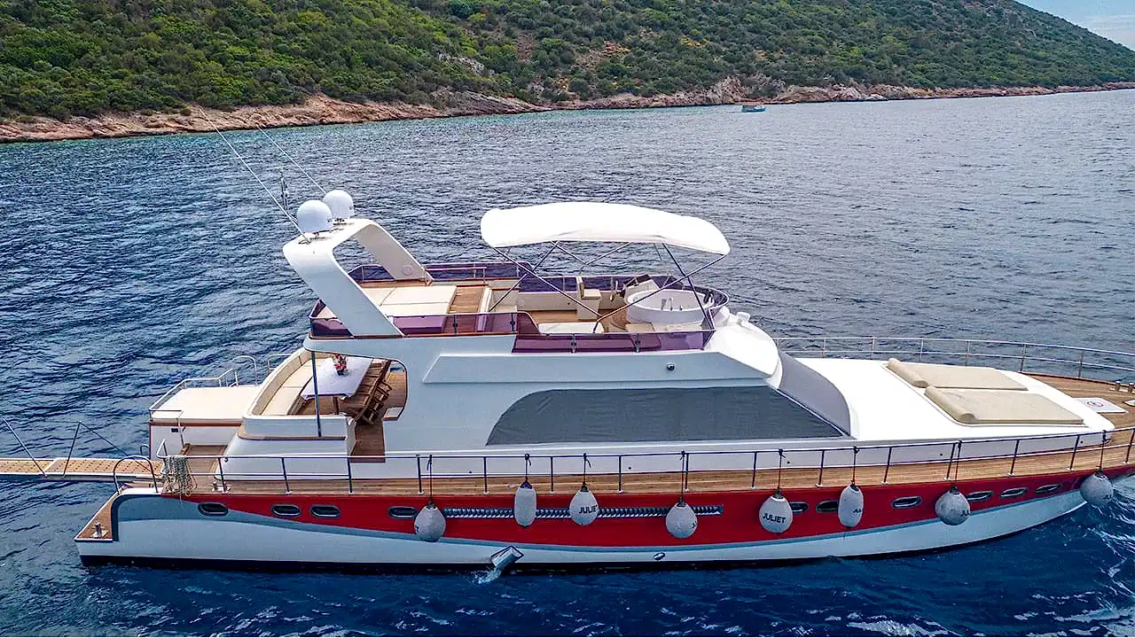 24 metre boyundaki fiber motoryatımız ultra lüks dizaynı ve ev konforu kalitesiyle, mavi yoluculukta siz değerli müşterilerimize eşlik edecektir.