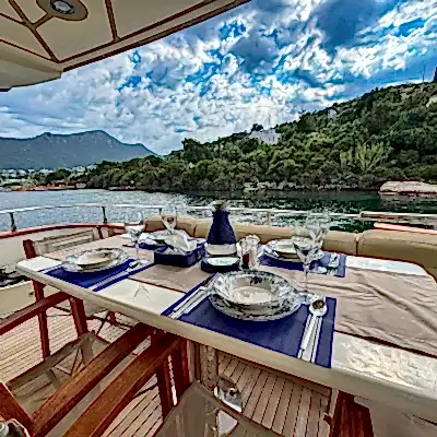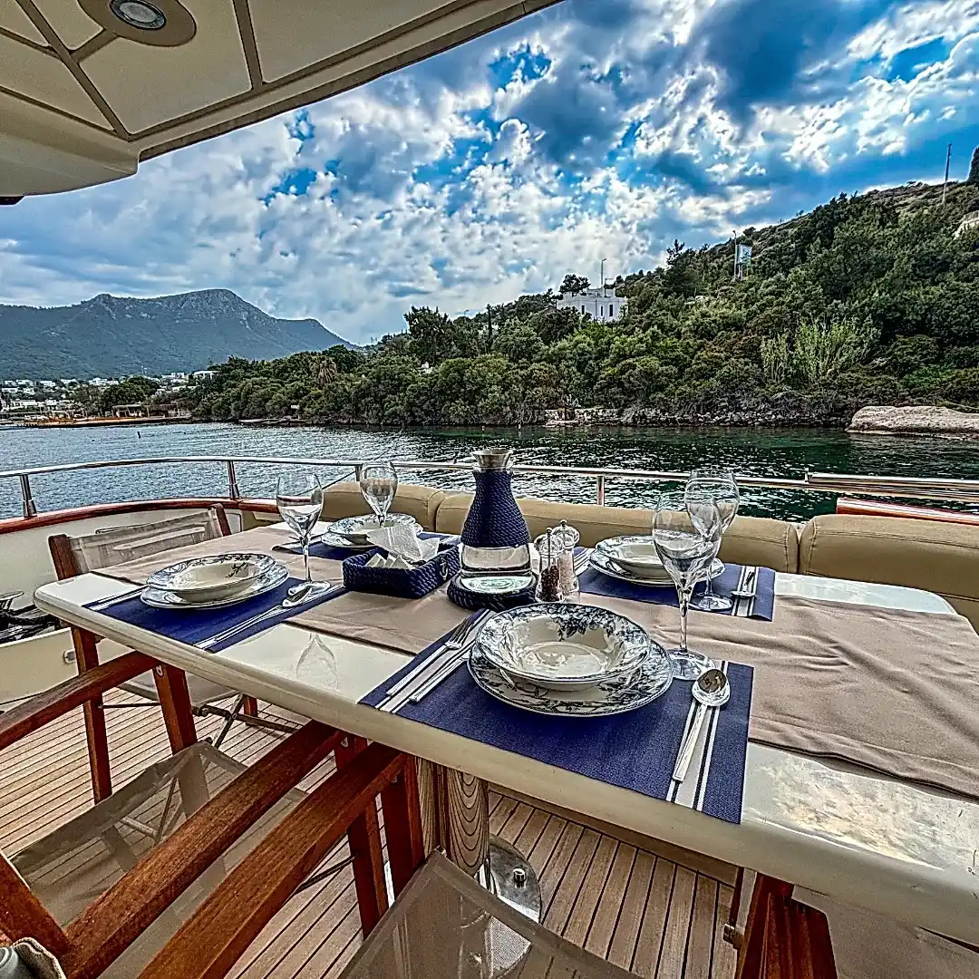 Özel teknemiz, geniş kullanım alanları ve modern donanımıyla misafirlerinizin rahatlığnı ve mutluğunu ön planda tutmaktadır. Oldukça geniş ve konforlu güneşlenme alanları, oturma grupları Bodrym özel yat turu deneyiminizi en üst seviyeye çıkarmaktadır. Sizler için özenle hazırlanan menüleri deneyimleyebilecek ve sonsuz bir tatil isteyeceksiniz. Bodrum’un bakir koylarında, denizin ortasında benzersiz anılar biriktirmek için bizimle iletişime geçmeyi unutmayın.