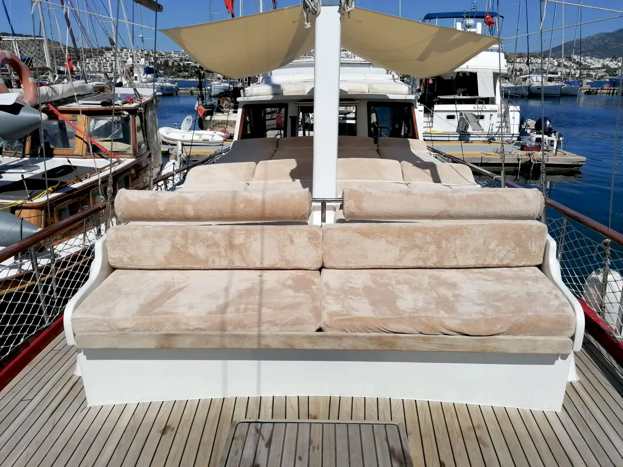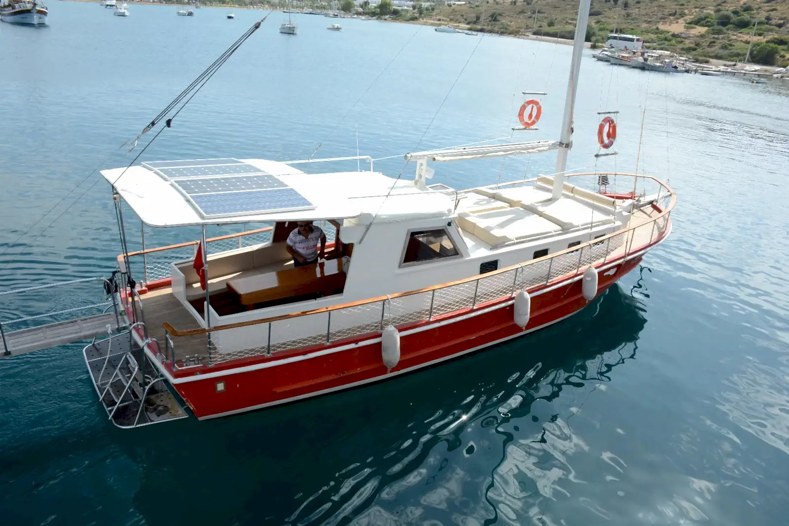 15 metre boyundaki Bodrum yapımı ahşap guletimiz yaz aylarının en konforlu ve eşsiz tatil seçeneğidir. Masmavi Bodrum Denizi ve muhteşem bakir koylarda bu ahşap guletimiz siz değerli müşterilerimize eşlik edecektir.