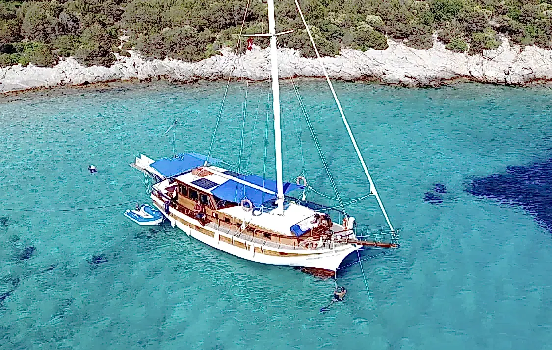 18 metre boyundaki Bodrum yapımı ahşap guletimiz yaz aylarının en konforlu ve eşsiz tatil seçeneğidir. Masmavi Bodrum Denizi ve muhteşem bakir koylarda bu ahşap guletimiz siz değerli müşterilerimize eşlik edecektir.
