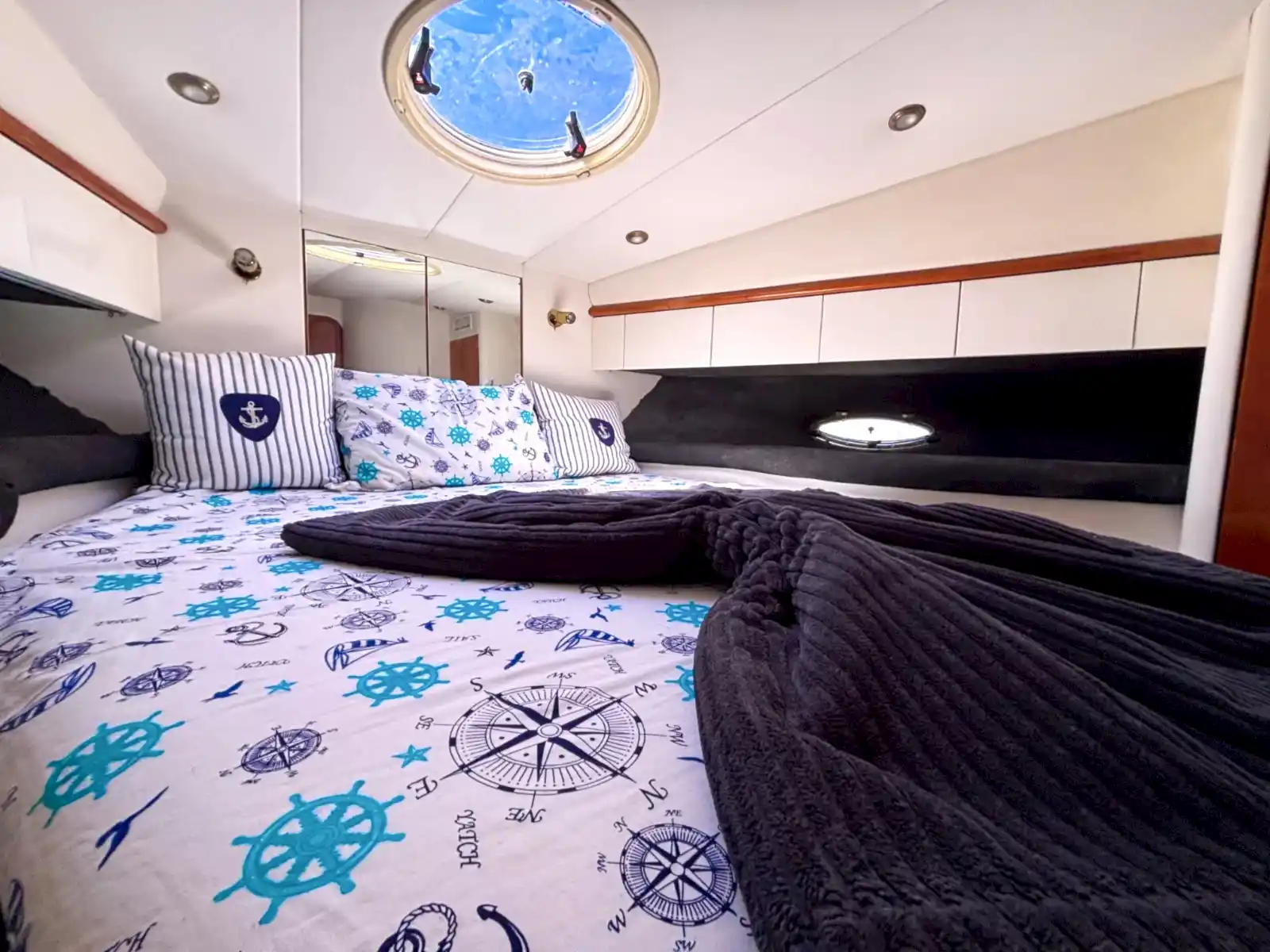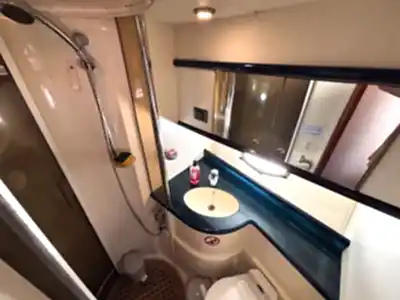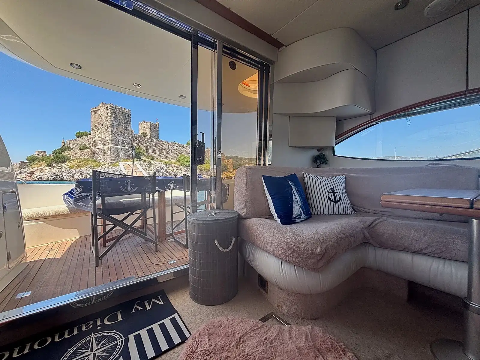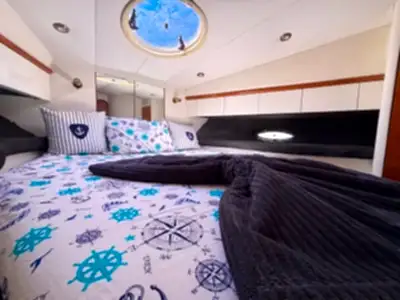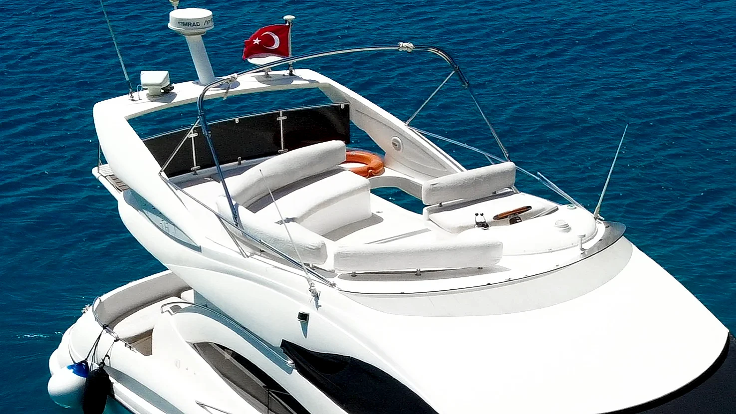 Yaklaşık 14 metre uzunluğa sahip olan bu lüks fiber yat, modern iç tasarımı ve ferah yaşam alanları ile evinizdeki rahatlığı aratmaz. Küçük gruplar için ideal olan yatımızda, kabinler dileyen konuklar için dinlenme alanı olarak kullanılabilirken, giyinme odaları ve tuvalet gibi temel ihtiyaç alanları da mevcuttur.
