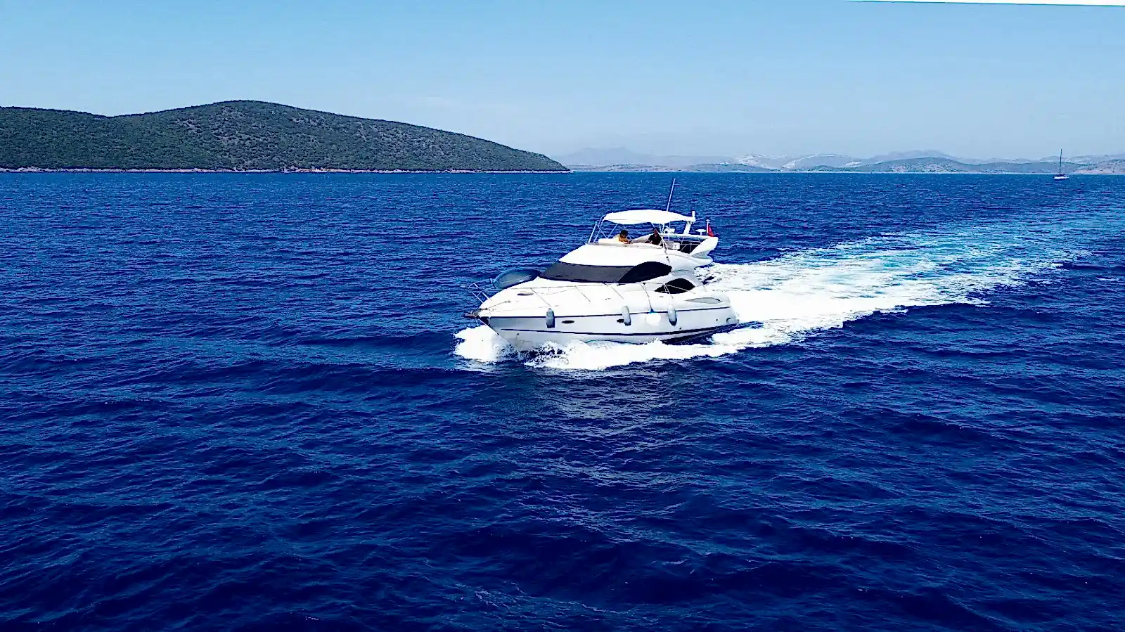 Bodrum kalkışlı Sunseeker Manhattan 46 motoryatımız, günlük geziler, gün batımı turları, doğum günü kutlamaları ve evlilik teklifleri gibi özel anlarınızı unutulmaz kılmak için deneyimli ve güler yüzlü ekibimiz eşliğinde hizmet vermektedir. Her detayı titizlikle düşünülmüş olan teknemiz, size ve sevdiklerinize ayrıcalıklı bir deniz deneyimi sunar.