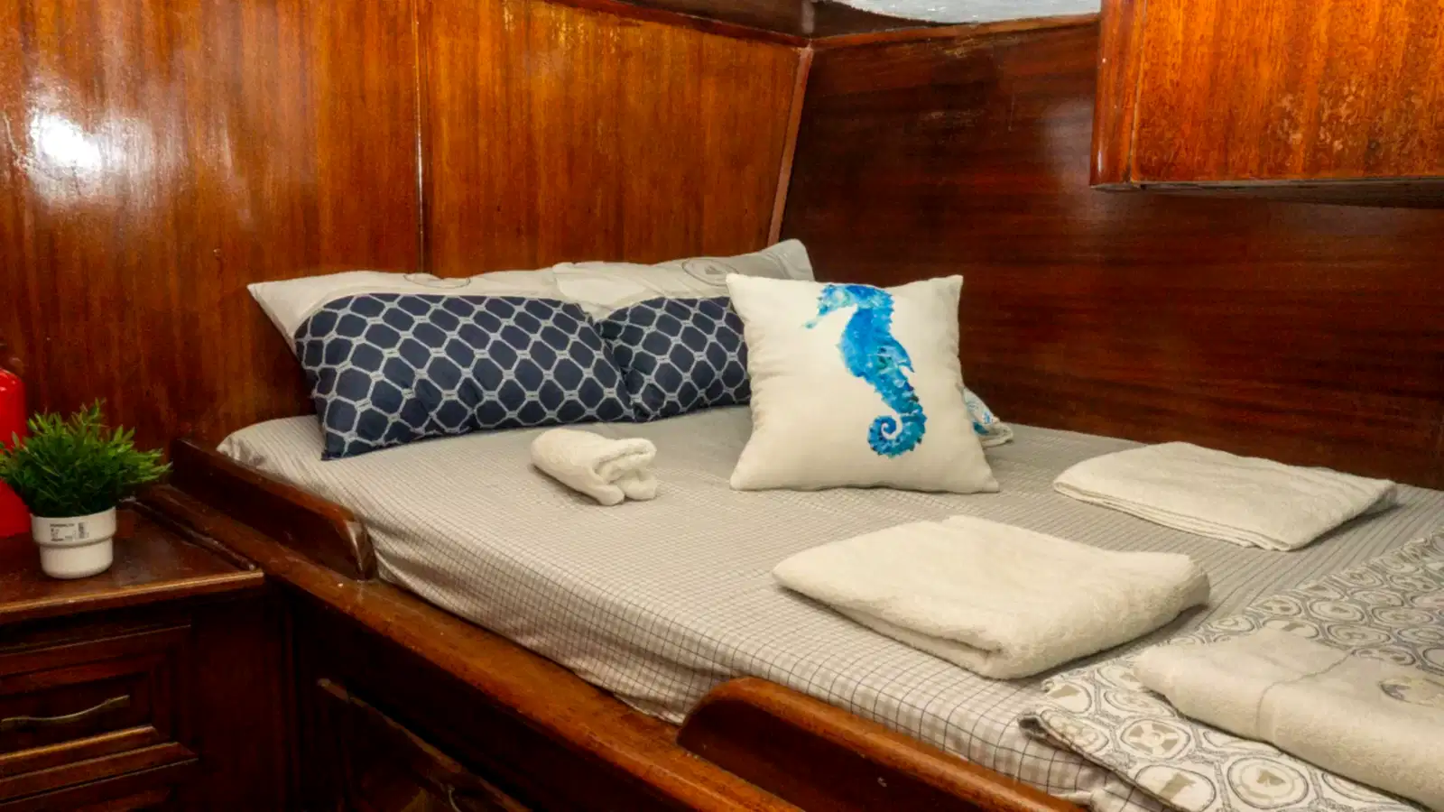Toplam 6 kabini ve kabinlerde çitf kişilik yataklar mevcuttur. Her kabinin kendisine ait tuvalet ve duşu bulunmaktadır. İstediğiniz müzikleri dinleyebileceğiniz bir müzik sistemimiz mevcuttur. Wifi olanağı da bulunan teknemiz Bodrum'un en eşsiz koylarında sizlere hafta ve gün boyu hizmet vermeye devam edecektir. Dalış ekipmanlarımızdan yararlanabilir, Bodrum Denizinin muhteşem canlılarıyla birlikte yüzme olanağını deneyimleyebilirsiniz. Olta takımı ile keyifli dakikalar yaşayabilir farklı tecrübeler edinebilirsiniz.