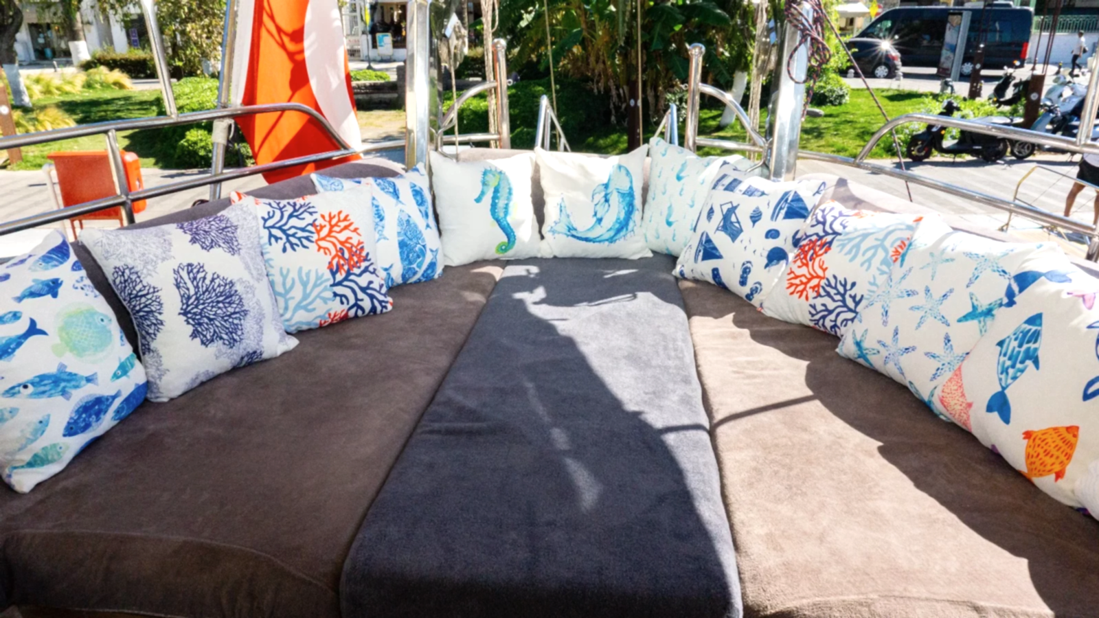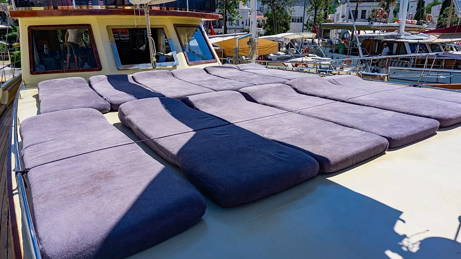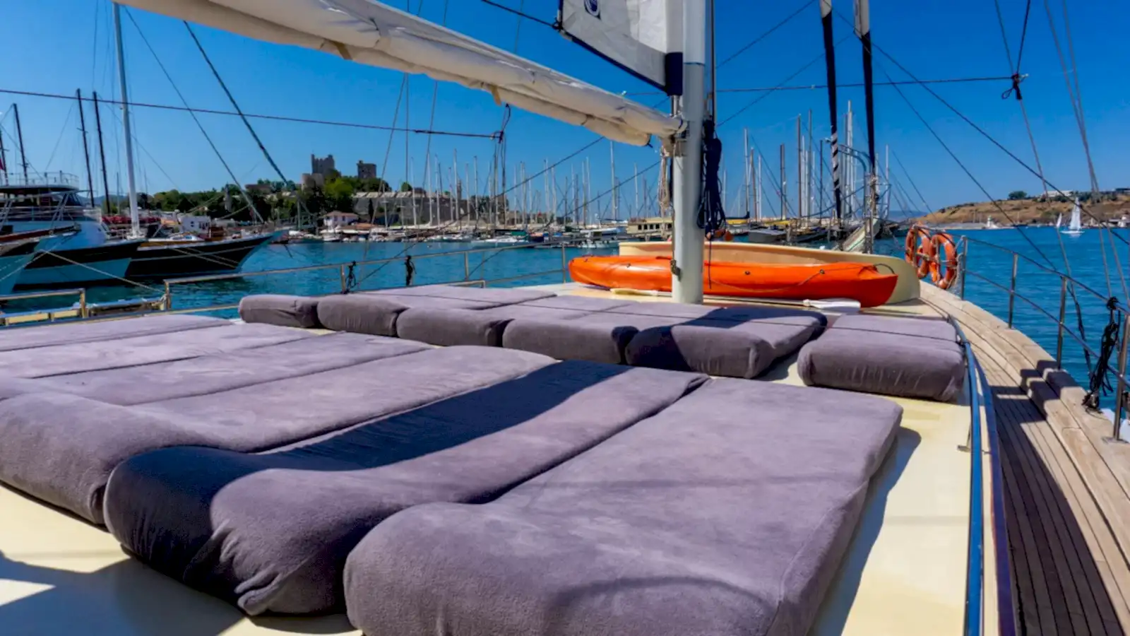 Rahat edebileceğiniz ve gün boyu güneşin tadını çıkarabileceğiniz oldukça yumuşak minderlerimizde Bodrum Mavi Turunu konforlu bir şekilde sürdürebilirsiniz. Arayın, Yerinizi Ayırtın, Ücreti Tur Günü Ödeyin!