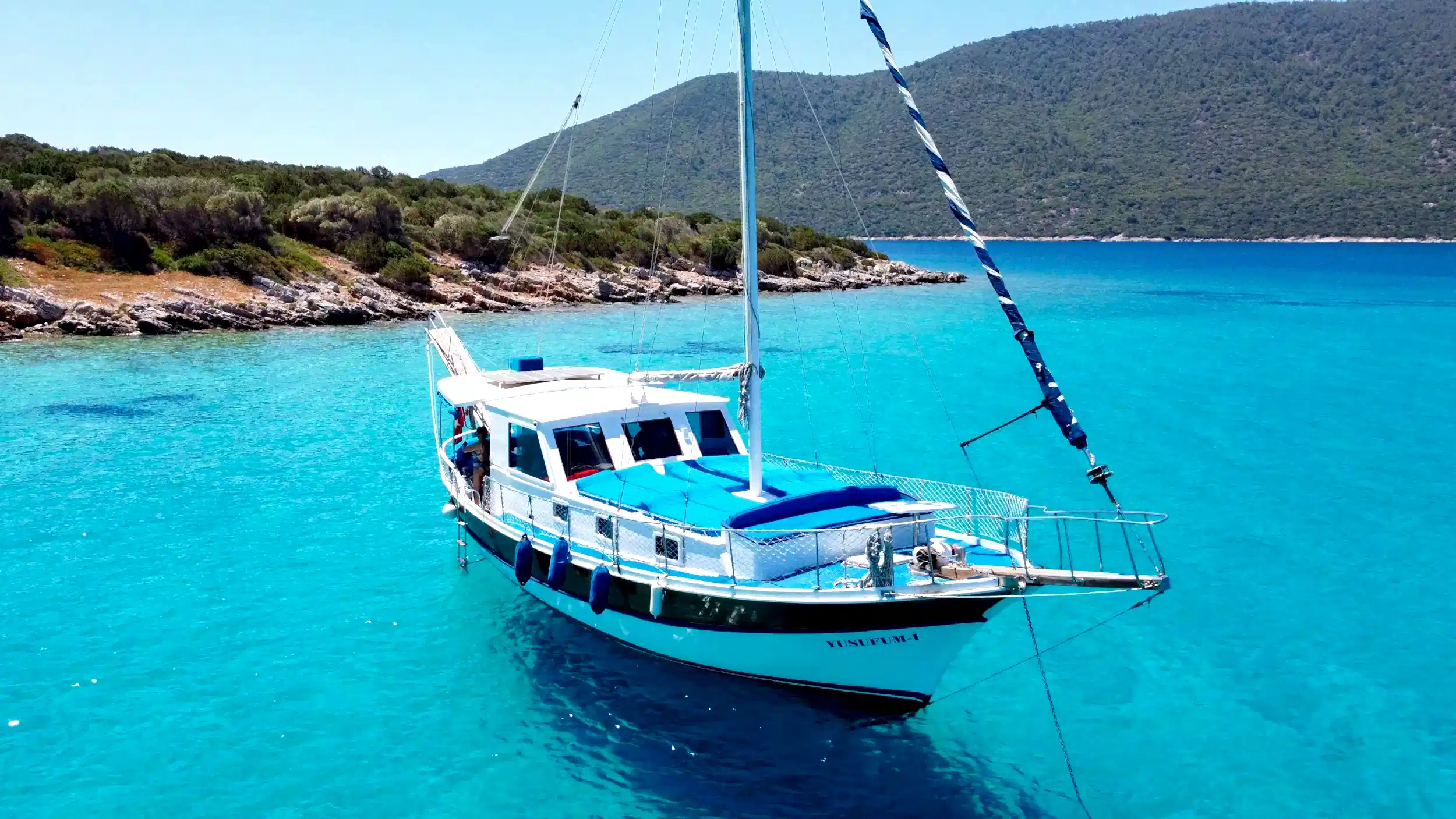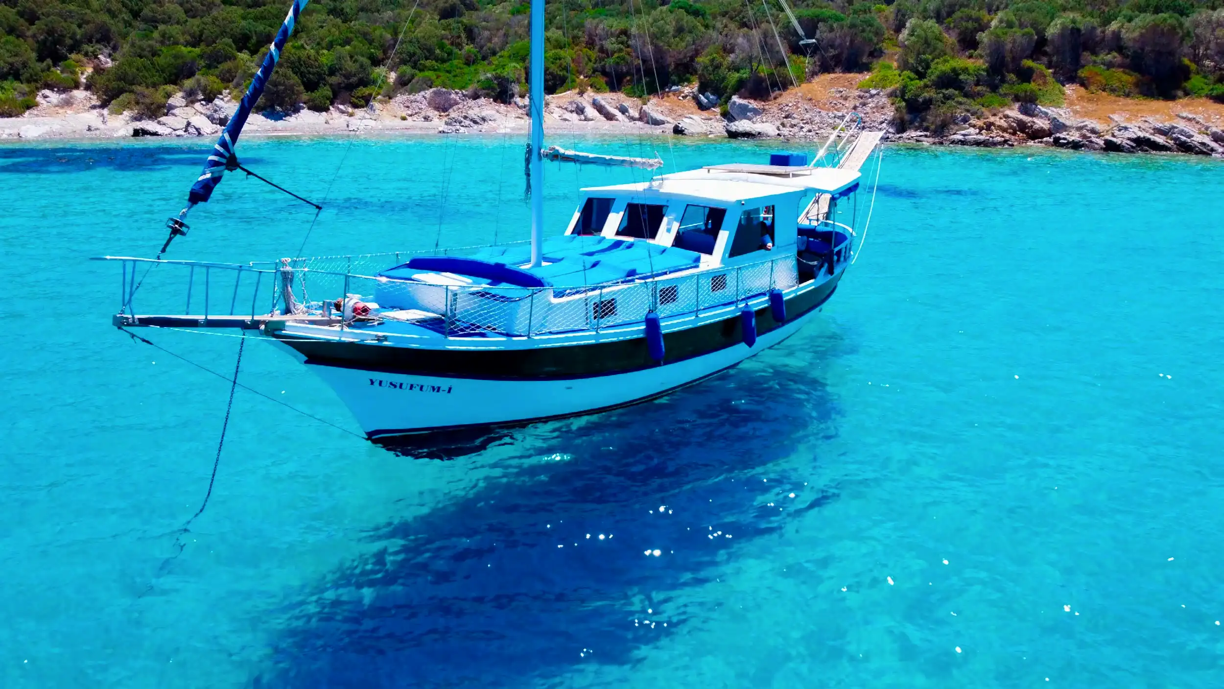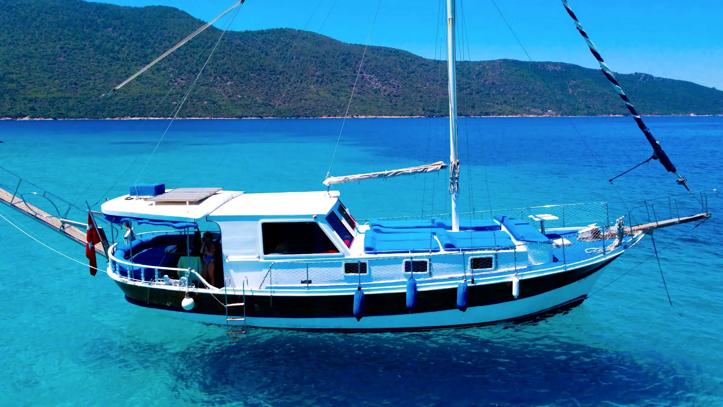 15 metre boyundaki Bodrum yapımı ahşap guletimiz yaz aylarının en konforlu ve eşsiz tatil seçeneğidir. Masmavi Bodrum Denizi ve muhteşem bakir koylarda bu ahşap guletimiz siz değerli müşterilerimize eşlik edecektir.