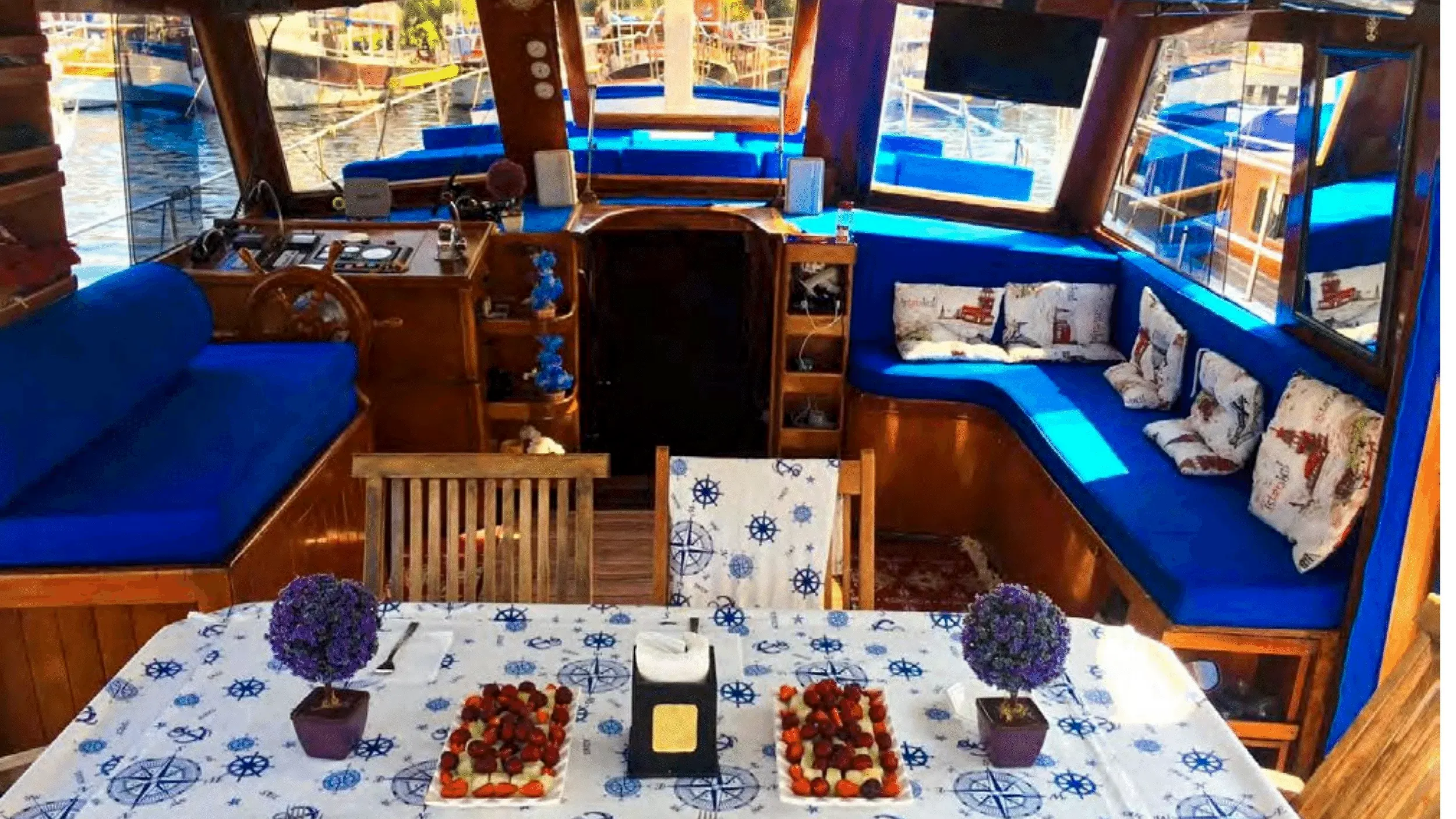 Rahat edebileceğiniz ve gün boyu güneşin tadını çıkarabileceğiniz oldukça yumuşak minderlerimizde Bodrum Tekne Turunu konforlu bir şekilde sürdürebilirsiniz. Sizin için özenle seçilen malzemelerle hazırlanan lezzetli ikramları Bodrum Guletimizde tadabilmek ve keyifli bir yolculuğa çıkmak için Yusufum'u keşfedin.Arayın, Yerinizi Ayırtın, Ücreti Tur Günü Ödeyin!